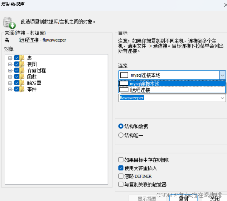 新建数据库并将本地数据库导入远程的